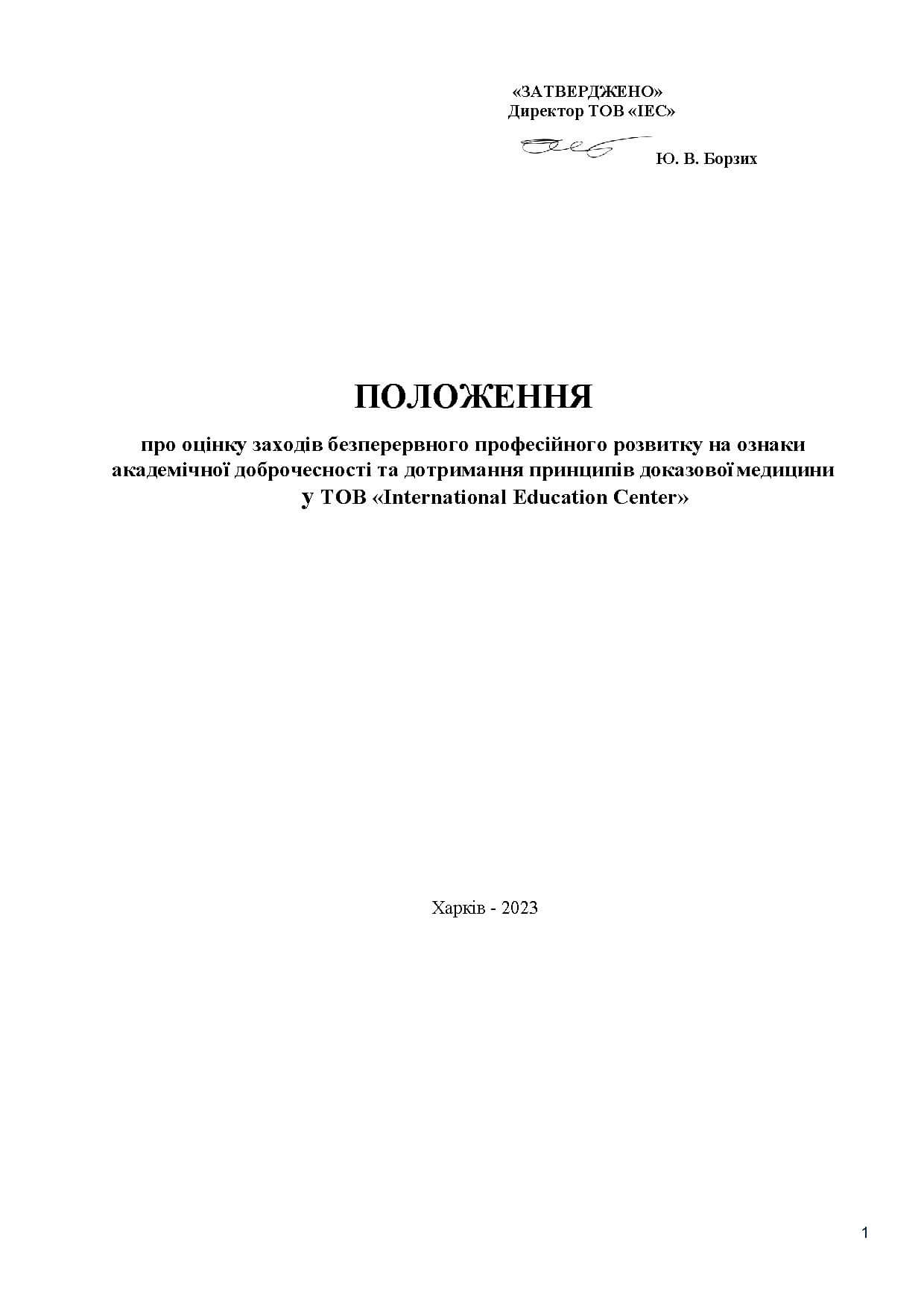 - Затверджено “Положення про оцінку заходів безперервного професійного розвитку на ознаки академічної доброчесності та дотримання принципів доказової” медицини