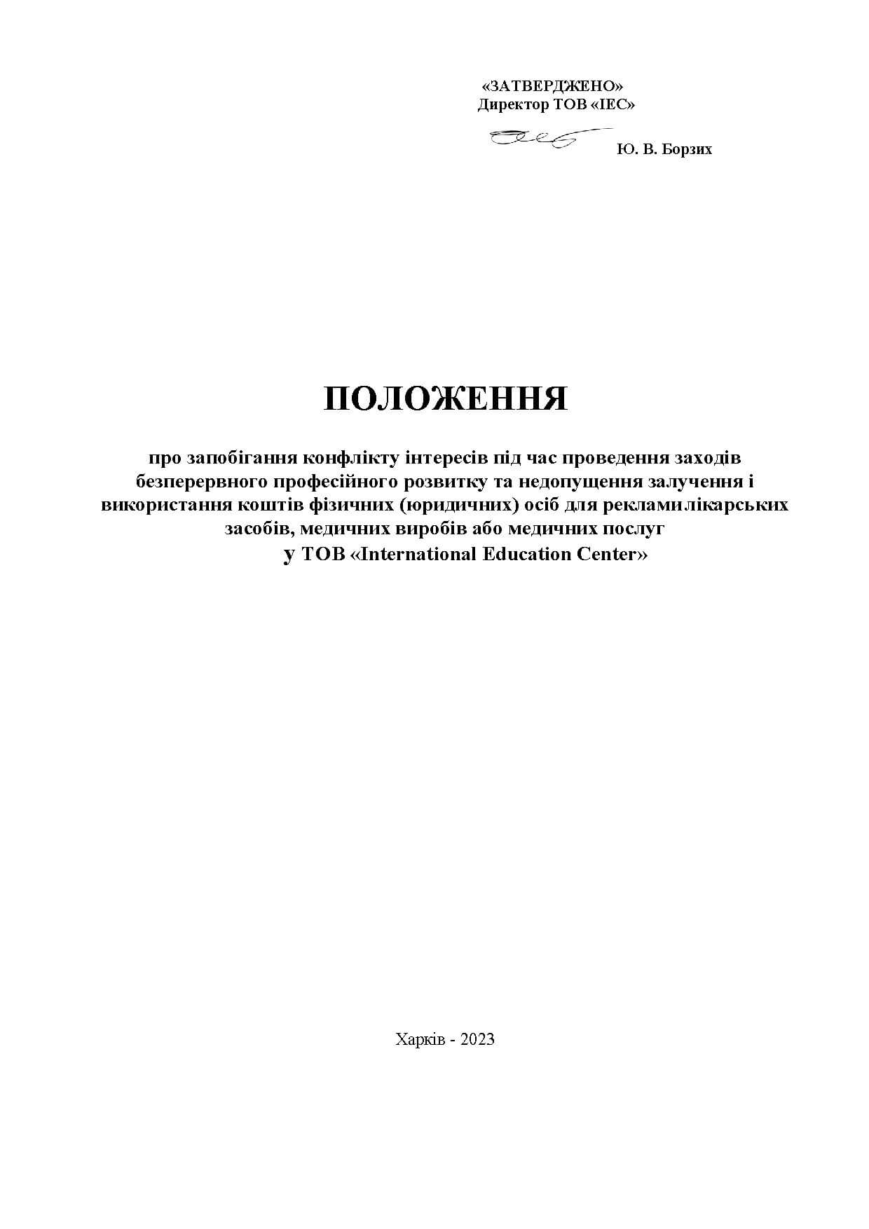 - Діє “Положення про запобігання конфлікту інтересів” під час проведення освітніх заходів