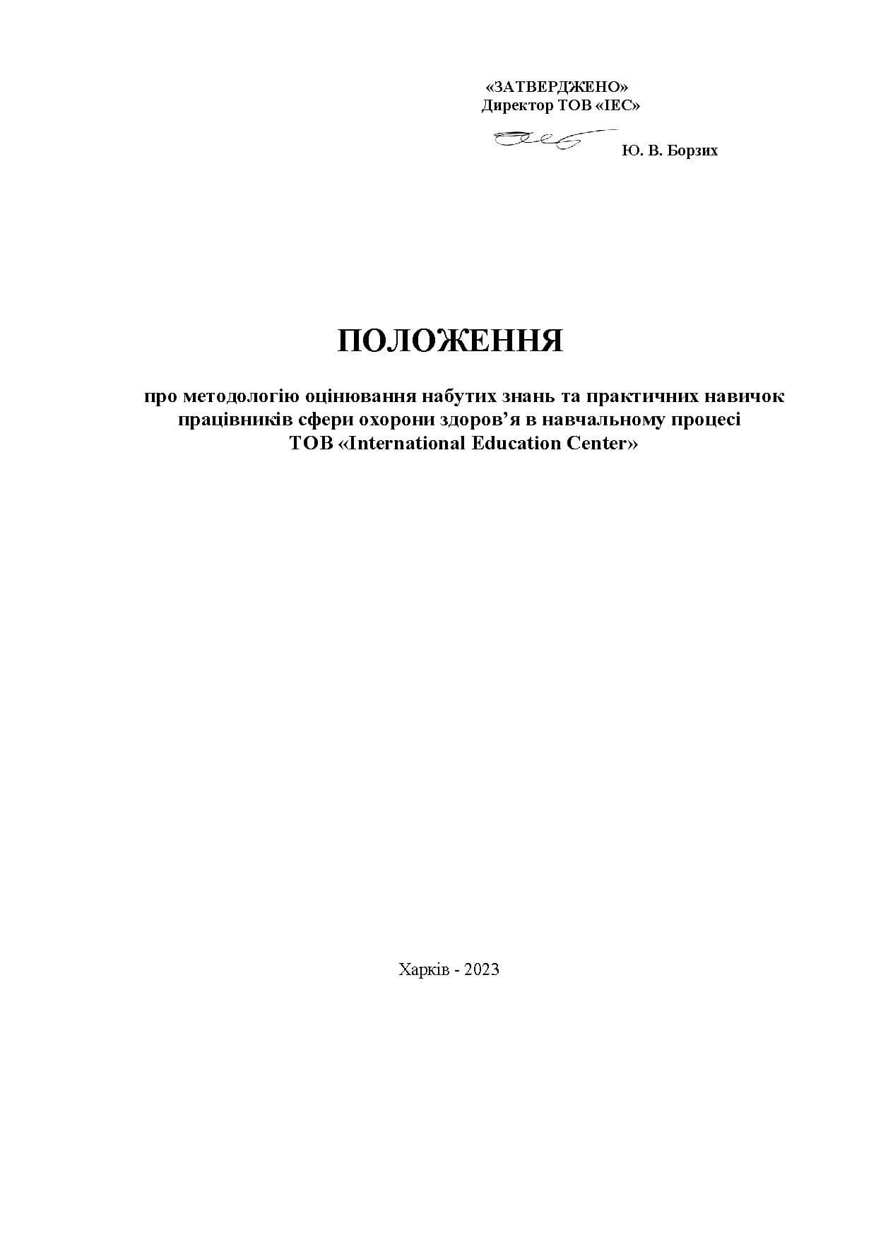 - Розроблено “Положення про методологію оцінювання набутих знань та практичних навичок” у навчальному процесі